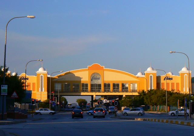 This is the Bridge Shopping Mall, built in the 80’s, which forms a bridge over a major arterial road leading down to the Northern Areas of PE. If you click and enlarge, you will see the name emblazoned on the building, and a bus which has just driven through under it. The cars travelling left to right are on the Old Cape Road, which used to be the main road to Capetown , until the freeway was completed about 40 years ago.