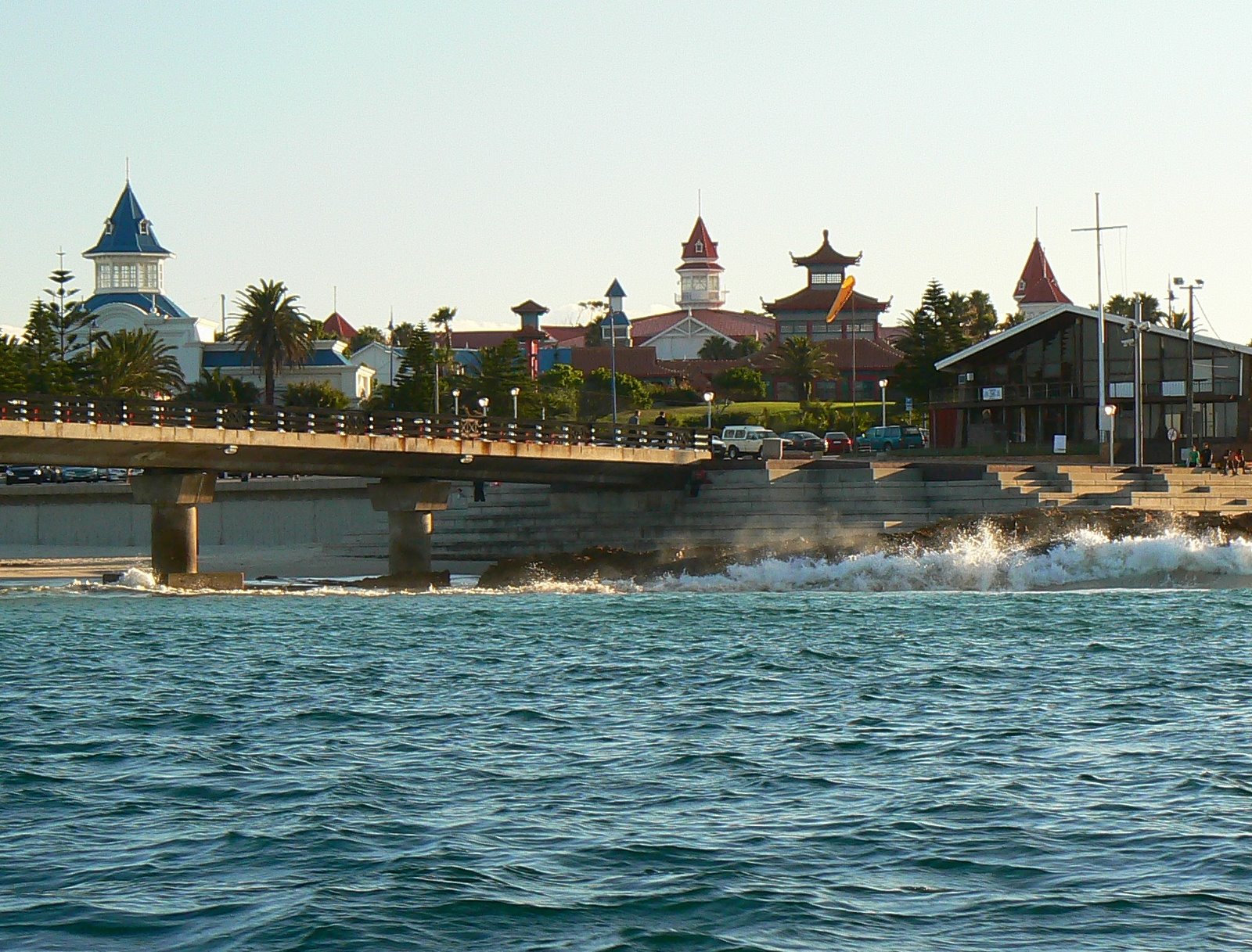Very lovely photo of the wayes, blue is my favorite color and seeing the blue sea makes me smile. Thanks for sharing! The casino complex looks like a castle too!