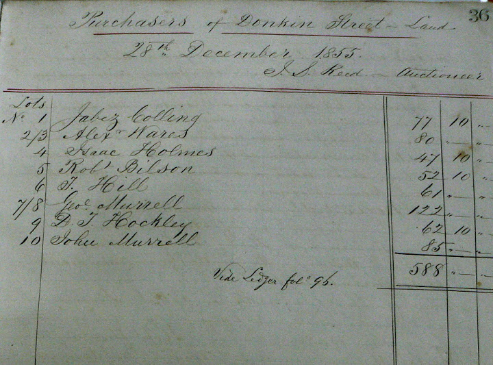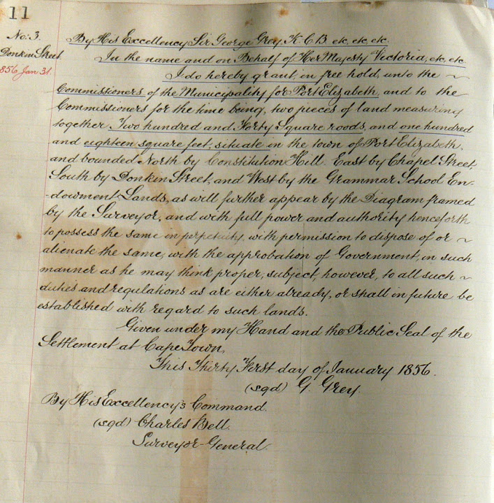 They are from the original fragile land books of the early 1800s in which all grants of land by the Colonial Government to the city were detailed. They are hand written in flowing copperplate, and accompanied by hand drawn maps by the Surveyor, to detail the exact positions of the properties. These are for the Donkin Terrace that we are currently featuring, and as you can see, they are dated 31st January 1856. The top one is the grant, next the survey drawing, and the last one details the first owners and how much they paid for the land.