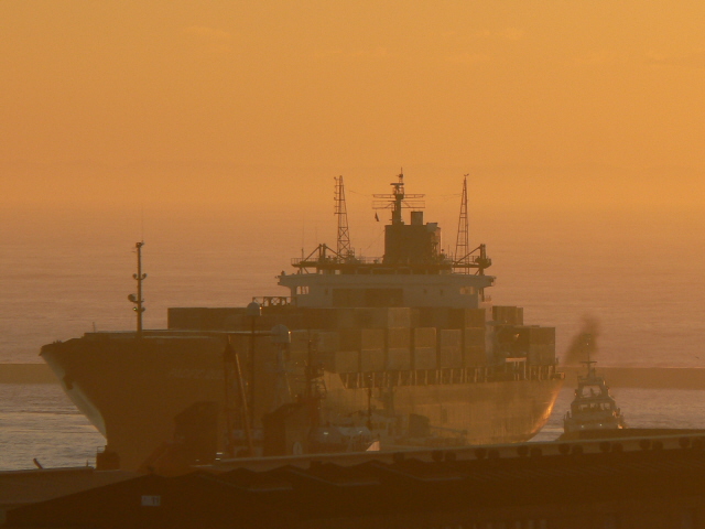 5 thoughts on “A ship enters the Harbour at sunrise