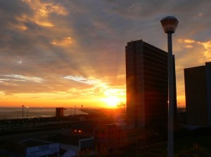 Well, as is becoming usual, Felicity cat (our bratty but delightful Siamese kitten, who you can meet on our personal blogs) decided it was playtime at 4am, and unceremoniously woke us up. We were therefore up and about by the time the sun put in an appearance, and as it looked pretty spectacular, we leaped in the car and took off down the hill to capture it as it rose over the harbour. Again this is a multi-tasking photo, because here is another in the lamp post series too!