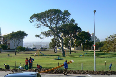 The other morning there was a sudden racket outside our front windows, and investigation revealed that the edge of the park was being dug up. Later on, I saw the orange pipes being dragged along, which confirmed my theory…. this is our turn in part of a huge operation to lay an entire new network of telephone lines throughout the country, for Neotel.