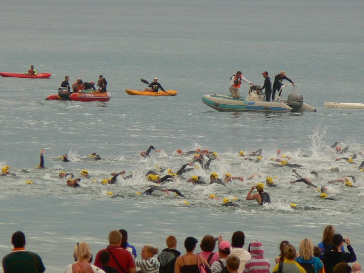 and they’re off, for their 3.8km swim which is the first stage of the event.