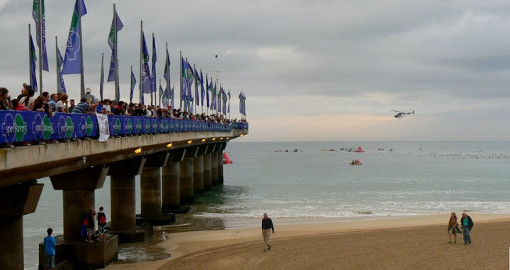 ….this weekend she was all dressed up and ready for the big event…. Ironman SA started on Hobie Beach, and the pier was crammed with spectators. (You can see a whole lot moreironman images here and also there is an overflow post of pier photos here.)