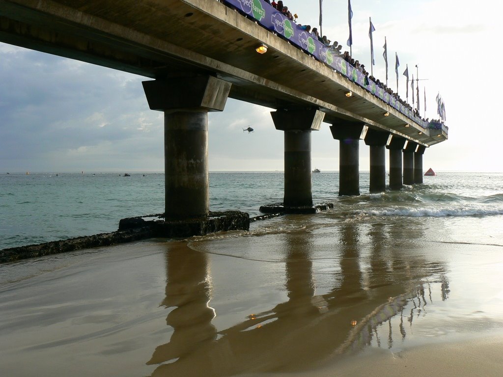 ….this weekend she was all dressed up and ready for the big event…. Ironman SA started on Hobie Beach, and the pier was crammed with spectators. (You can see a whole lot moreironman images here and also there is an overflow post of pier photos here.)