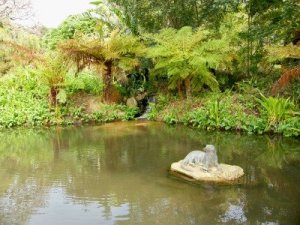 The walkways through the park leads to many different areas within the garden. These range from huge flower beds and forest areas to aloe gardens, ponds and streams. From the gardens several trails lead off along and up the mountain slopes and these are much used by walkers and mountaineers. Above is the Otter Pond surrounded by tree ferns.