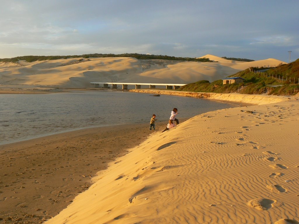 In response to yesterdays post of the beach at Maitlands River mouth, Richie requested some views of the dune and surroundings. Here it is from the beach, and in the foreground is the lagoon formed when the river mouth when it is closed by sandbars. The pipeline that feeds water to Port Elizabeth from the Churchill Dam is seen crossing the river. The little building to the right is a rather tatty ablution block on the edge of the carpark. It is a magical place for kids to run wild!