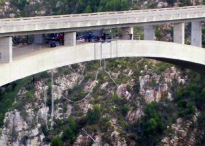 Omigosh, that bridge doesn’t look like it has much of a guard rail on it. I think I would be nervous to drive across it, let alone bungee jump off it. Do people ever drive off that bridge into the ravine below?Holy doodle!