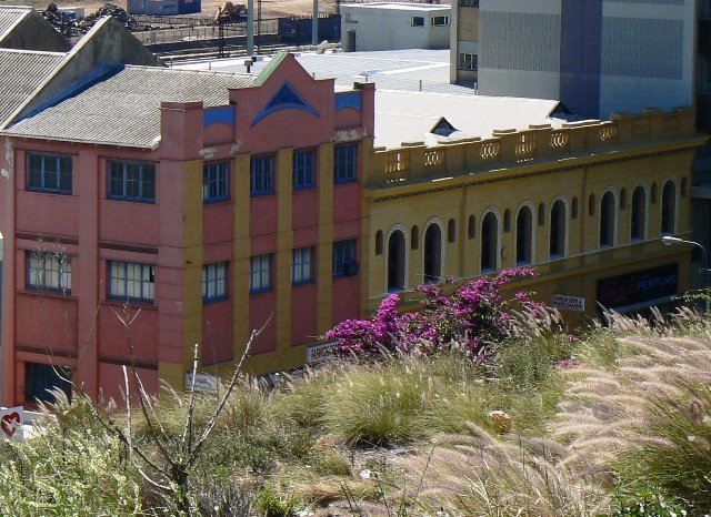 Looking down on some of the older buildings in Govan Mbeki Avenue (formerly Main Street), built in the days when this section was still known as Queen Street. These buildings stood on the beachfront in the old days and everything behind them is reclaimed land.