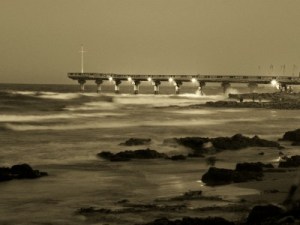Last night we headed down to the beachfront for the annual Opening of the Season festivities. The highlight of the evening is a fireworks display from Shark Rock Pier at Hobie Beach. I will post a couple of fireworks pics tomorrow. We found a good spot from where we had a nice view of the pier and settled in for our wait until the fireworks started at 20:30. Just after sunset the view across to the pier was beautiful, and seeing that I had my camera and tripod on hand (duh!) I decided to take a couple of pictures.