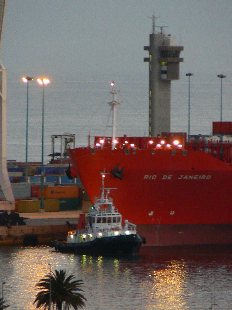 I will never tire of watching the big ships being shepherded in and out of the harbour by the powerful little tugs, this was around 5am last Saturday. You can see the Port Captains watch tower in the background.