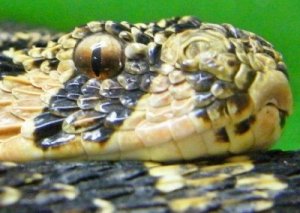 The visit starts with a guided tour showing you all the different snakes. This guy is the most common snake we find in this area. Its called a Puffadder and is a distant cousin of the Rattlesnake. It is responsible for a lot of snake bites as it tends to lie in footpaths sunning itself and people would stumble over them there.