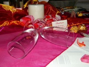 What a lovely looking couple…he I must say is quiet a *hottie* Never seen glasses decorated like that, I do like the idea…Lovely traditional wedding cake, you dont see many of those at wedding anymore…My mouth is watering for a cupcake..the colors are so different and so attractive to the eye.Food looks good, but no pork or lamb for me…chicken, chicken, chicken, and fish…but love the veggies.Last photo is so pretty…the colorsLooks like you had a good time last night…Great photo’s