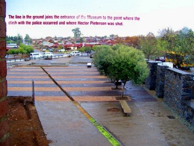 This picture was taken through one of the windows in the Hector Peterson Museum which is situated next to the Memorial.