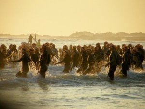 I was on the beach at sunrise this morning to see the competitors off on their swim. The conditions were perfect with barely a breeze and a very flat ocean.