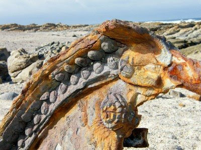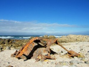 We went to camp at Cape St Francis over the Easter weekend. On Sunday morning I decided to take the trail westward along the coast as indicated on the resort’s info sheet to see if I could find the wreck (apparently what is left of The Osprey which ran aground in 1855) and the blow hole marked on it. Unfortunately the tide was too low to find the blow hole and, well, there wasn’t much left of the wreck to say the least. But no worries, it still made for a great photo opportunity.