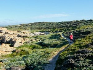 On our recent trip to Cape St Francis, Chaos Boy decided to tag along on my outing to find the wreck indicated on the information sheet at the resort we were staying at. While I was taking pictures all over the show, he was exploring away on his own. I liked how his red shirt stood out against the greenery.