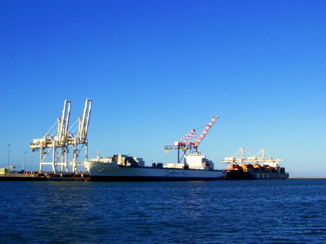 A couple of container ships lying at berth in the Port Elizabeth harbour. The PE harbour was built in the 1930’s and is the 5th largest harbour in South Africa after Durban, Cape Town, Richards Bay and Saldanha Bay. The new industrial harbour at Coega will take over certain functions that is currently being done in the Port Elizabeth harbour, but it won’t replace it. One of the things it will be able to do is to take ships that are a lot bigger than what the PE harbour can currently accommodate.