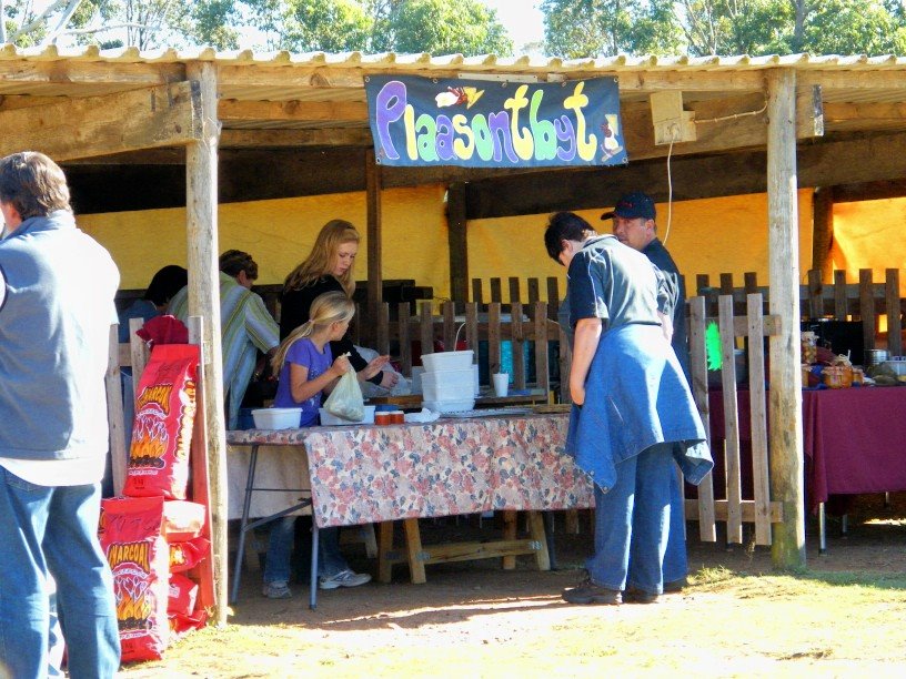 Every Saturday there is a Farmers Market at the Van Stadens Dutch Reformed Church in St Albans west of Port Elizabeth. You will find everything from fresh vegetables to home made biscuits and knitted toys. The most popular stall must be the one selling farm breakfasts. Bacon, egg, sausage, onions and toast for R20. A real bargain. If you don’t feel like bacon and eggs, try the sosatie rolls at the stall next door. Yum!