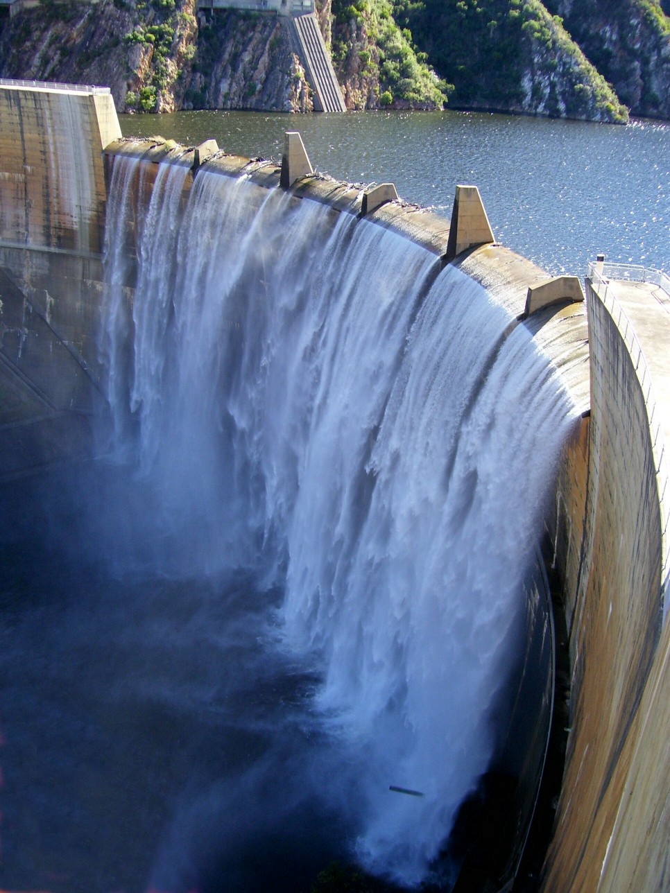 At the top of the Gamtoos Valley one would find the Kouga Dam, one of Port Elizabeth’s three main water supply dams. The Kouga Dam was the first double arch dam to be built in South Africa. Other than for urban use, the dam is also the main supplier of irrigation water to the Gamtoos Valley. The pic was taken a little while ago when the dam last overflowed.