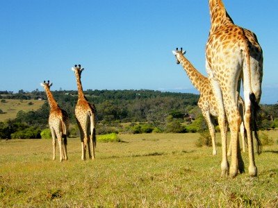 These four giraffe crossed the road right in front of us at Kragga Kamma Game Park on Sunday. (Why DID the giraffe cross the road? The chicken was having a day off.) As soon as they were on the other side they stopped dead in their tracks and stretched their necks (get it? stretched their necks) and stared down the hill. I wonder what they were looking at.What’s everybody looking at?