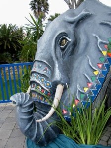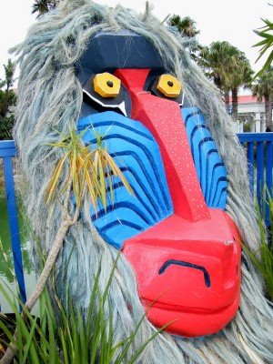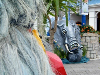 The giant animal masks were part of the decorations at yesterday’s proceedings with the Minister of Tourism at the Boardwalk.