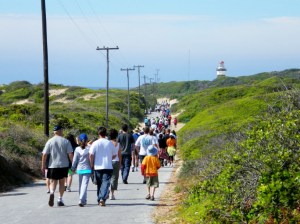 Following yesterday’s post on the Penguin Plod I decided to post another pic from the Plod. Yesterday’s was from the last section of the walk strolling (or plodding) along the beach. Today’s picture was taken not too long after the start of the Plod as people were heading down towards the Cape Recife Lighthouse through the nature reserve.
