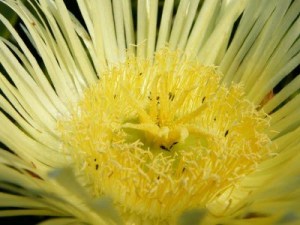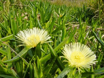A little while ago I did a post on the Natal Creeping Fig with its purple flowers. In that post I mentioned that it is related to the Sour Fig (Carpobrotus edulis). I found a Sour Fig the other day and took some photos of it to show you what it looks like as well.