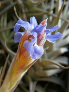 Last year at about this time I did a post on my air plant flowers. In the post I mentioned that the ones flowering were plants I received from my mom and that I had some air plants which haven’t flowered before. Well, its air plant flowering time again. All the “new” ones had their beautiful bright pink flowers again (see here), while the “old” ones had no flowers… or thats what I thought. I was working in the garden when I noticed one of the “old” plants had a single blue flower. I rushed over to the other “old” one elsewhere in the garden and found one flower on that one too. I am very chuffed to have seen them flowering.