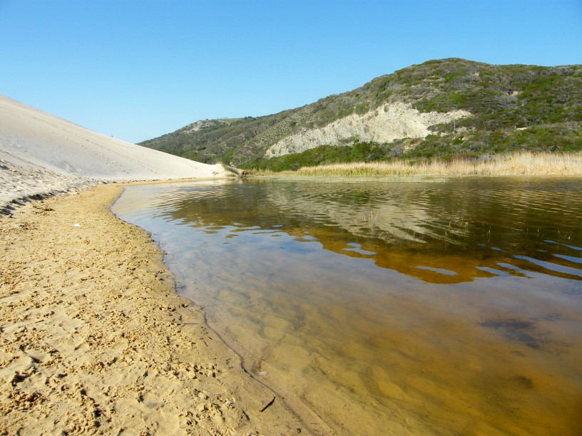 The Maitlands River would never really be called a river of note, more like a local stream. But on its way to the ocean it flows through Sleepy Hollow and past the giant Maitlands sand dune. Just before it slowly flows into the ocean, it forms a small lagoon next to the dune. Usually in summer kids will splash around in it as the sea at the river mouth is a bit of a dangerous spot to swim in.Maitlands River Lagoon