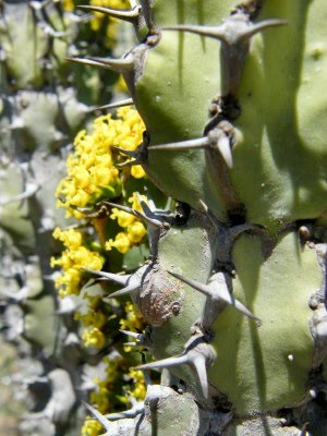 The Karoo is well known for its many different succulent species. Driving through some parts of the Karoo, specially around the Jansenville area, one will find a variety of euphorbia plants. One in particular stands out. The local euphorbia are smallish, thorny plants with a milky sap and are known as noors, giving the region its name of Noorsveld.