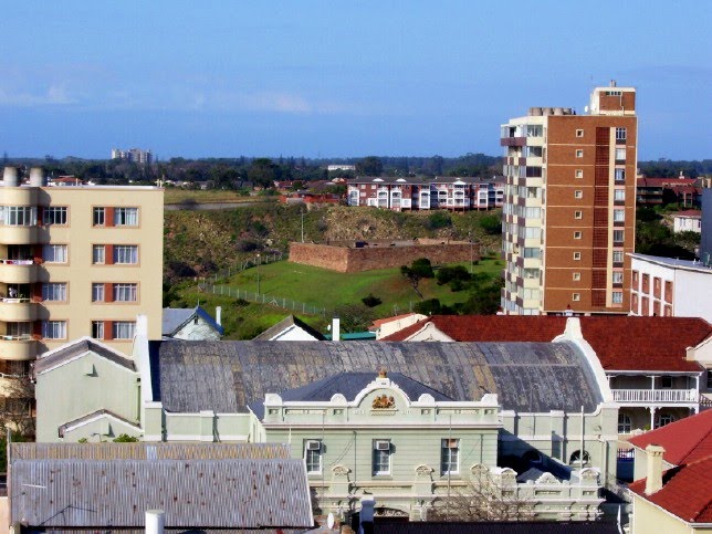 I have posted various view from the top of the Donkin Lighthouse before, but here is one I haven’t. Looking south, you can see Fort Frederick in the background between the apartment buildings while the light green building in the foreground is the Prince Alfred Guard Museum.