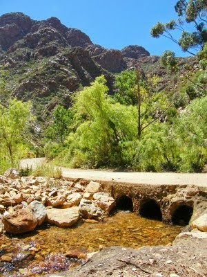 Rights at the bottom of the pass just before you join up with the tar road going to Prince Albert there is a valley with a welcoming cool stream and shady trees. We stopped next to the river and couldn’t get our shoes off quickly enough to get our feet into the soothing water. A perfect end to a perfect drive.