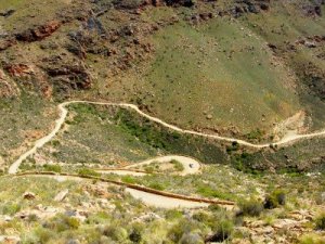 Yesterday we drove up the Swartberg Pass and took a break at the top. Today we decent into the Karoo. The northern part of the pass is famous for its switchbacks and you won’t find a travel book on South Africa that doesn’t have at least one photo of the pass.