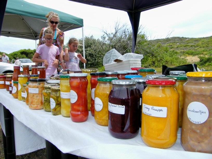 We popped into the Schoenmakerskop Flea Market this morning for a quick squize. Its not one of those big markets but something a little bit more intimate. This one particular stall had a huge range of jams, preserves and pickled items at the most unbelievable prices. Usually you would pay about R20 or R25 for a bottle of jam. This guy was selling them for about R12 (not even $2 US) each. Needles to say, my mom who was visiting for the weekend took about 8 different jams while the Damselfly also took a couple. Next month we’ll pop in again to restock the supply.