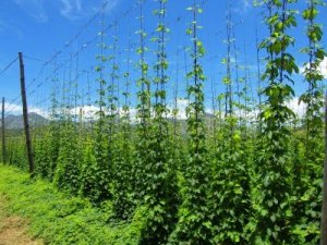Driving from the Garden Route to the Klein Karoo over the Outeniqua Pass, one passes a couple of farms growing plats that creep up strings hanging from wire frames. I used to wonder about it till I found out that it was hops. Now I don’t know much about hops other than the fact that it is used primarily in the brewing of beer. So I went to the handy information tool that is Wikipedia.