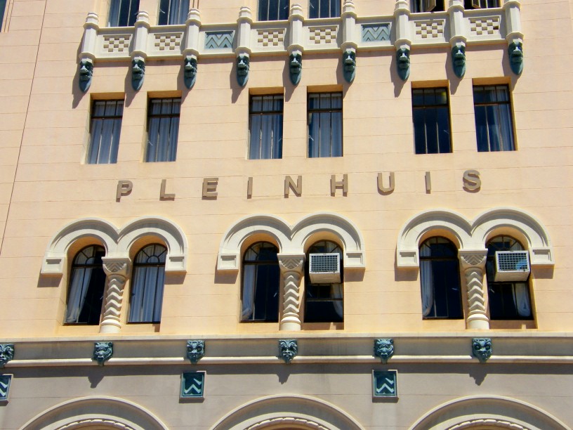 There is quite a number of interesting and historic buildings in the area around Market Square in the city centre. One of those which is just across the road from the City Hall is Pleinhuis. The building belongs to the municipality and houses amongst others the offices of the portfolio councillors on the mayoral committee. Like so many other buildings built in Port Elizabeth at that time, Pleinhuis was built in the Art Deco style. When I passed it the other day I noticed that, like so many places these days, it had its name changed. The new name is Noninzi Luzipho Building. I still think Pleinhuis is a suitable name as its on the plein (square as in Market Square). The Gargoyle birds from the other day’s post is on top of Pleinhuis.