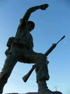 Although Oudtshoorn is only a big town and not a major city, it houses one of South Africa’s biggest military bases. It also has an invantary school where a part of South Africa’s military forces get their training. This statue of a soldier is situated on the road outside the entrance to the base. The plaque reads: