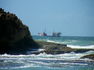 A fishing trawler sailing along the Sunshine Coast between Port Elizabeth and Port Alfred