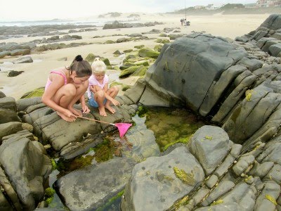 Who has never chased little fish around rock pools with a net before? I always think the poor little fish living in these rock pools must be so stressed. I would go swimming for cover every time I see a couple of kids with a bright net coming my way as well. Here the Drama Princess is watching Gem Girl chasing the poor little fish around their pool.Rock pool fishing