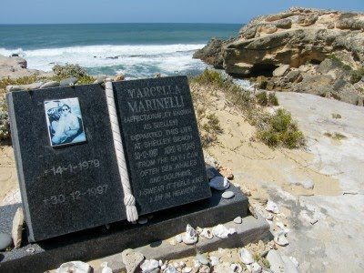 At the top of the cliff overlooking the beach is a small memorial to Marcella (Shelly) Marinelli, born 14-1-1979, died 30-12-1997. It says: “Departed this life at Shelly Beach aged 18 years. From the sky I can often see whales and dolphins. I swear it feels like I am in heaven”. I haven’t been able to find any more information regarding her though.