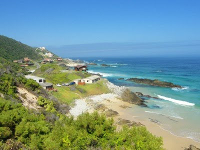 A week or so ago we spent a weekend at Eersterivier in the Tsitsikamma. I hesitate to call it a village as it is nothing more than two rows of houses wedged between the beach in front and the hill behind. Eersterivier (picture above) and Skuitbaai (in the background of the picture below)next door has less than 100 plots each to avoid it being classified as a village.