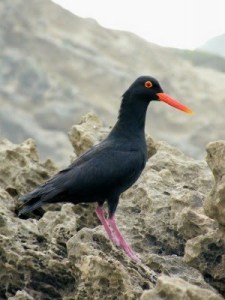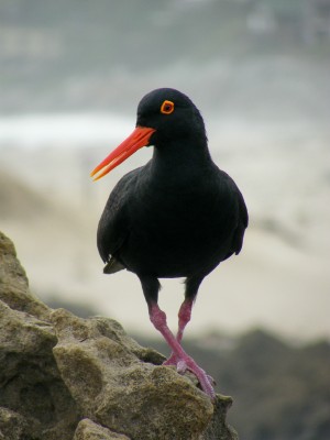 I am always glad when I see African Black Oystercatchers (Haematopus moquini) on the beach or next to an estuary. This oystercatcher is a protected bird with a population of less than 5,000 adults. They are noisy plover-like birds with completely black plumage, red legs and a strong broad red bill used for smashing or prying open mollusks such as mussels.