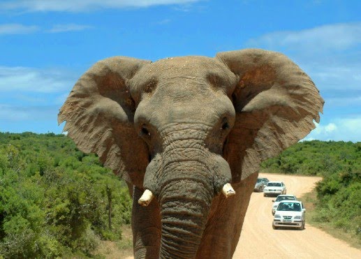 There was an article in the newspaper this morning about one of the younger big elephant bulls in Addo Elephant National Park killing one of the older ones. It made me go and have a look at my elephant pictures to see if I had a nice picture of an elephant bull. I found this one that was taken a couple of years ago when I was still tour guiding. We were in Addo in a 11 seater minibus which I was driving. This big bull came walking down the road and headed straight at us. He showed no aggression, but also no intention of leaving the road. Thus leaving us right in his way. When my reverse lights came on the cars behind me saw that they had to get out the way and scattered. I made sure I stayed far enough in front not to irritate him. After a minute or so he changed direction and mozy’d off into the bush. While I was reversing the tourists in the bus was clicking away and this pic was sent to me by Paul Settle of the UK.