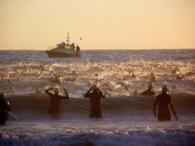 The competitors in Ironmann South Africa setting off on the 3,8km swimming leg at Hobie Beach in Port Elizabeth. In the background is the the boat of the National Sea Rescue Institute (NSRI). For more of my pictures of Ironman SA, go here.