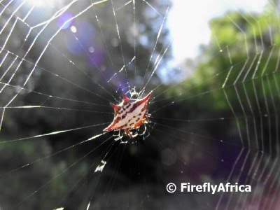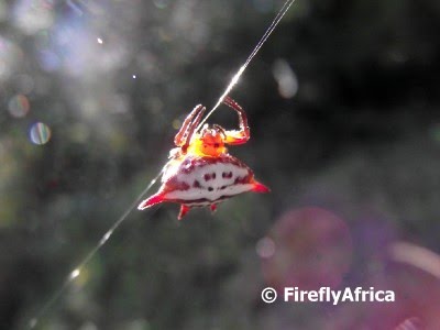 I have done a post about a Kite spider and its web before, but I recently came across this orange and white Kite Spider (Genus Gasteracantha). The Kite spider has a flattened, shiny and hard abdomen with spiny projections.