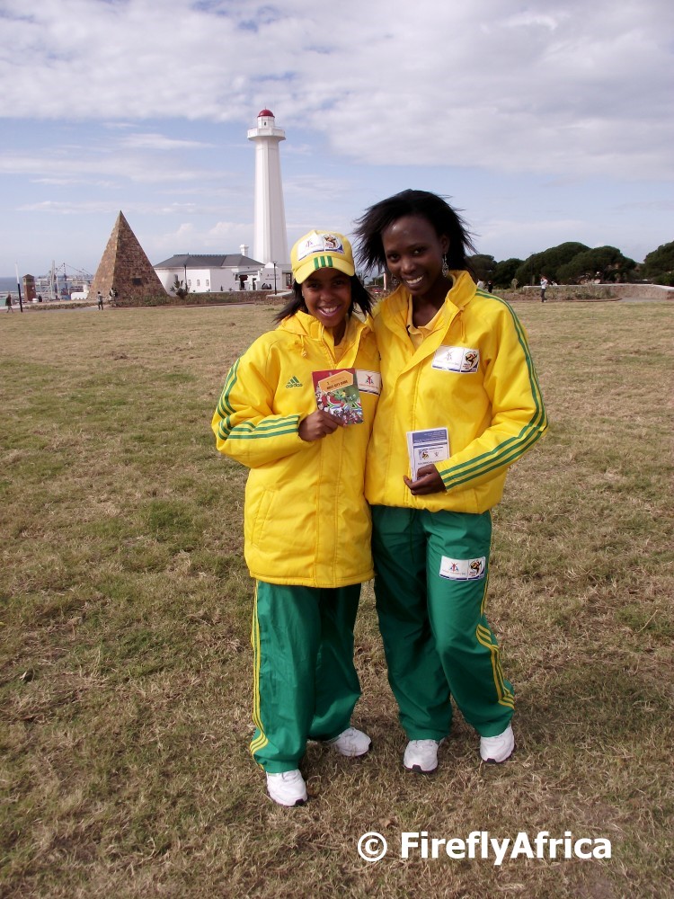 The city has trained 750 Host City Volunteers who has offered their time and services in areas where their support are needed. About half of them are roaming the streets around Central and on the beachfront as well as the FIFA Fan Fest at St Georges Park (and airport, some shopping centres, etc, etc) to disseminate Host City Guides and help visitors with directions, times and transport information. The other half has been deployed at the transport points to and from the stadium and Fan Fest. These volunteers are easily recognisable in their yellow and green Host City outfits. I encountered these to young ladies on the Donkin Reserve when I popped down there the other day.