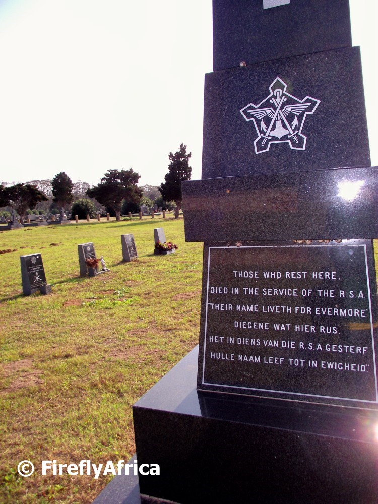 I don’t really need to say it as regular readers of specially my other blog will know, but I have a thing for cemeteries. Specially old ones. This is to such an extend that I have had a couple of people ask me to track down headstones of their ancestors for them. Anyway, Port Elizabeth has several cemeteries with military connections and/or sections. The Forest Hill Cemetery had a ‘Heroes’ Acre’ laid out in 1980. This was in the Apartheid years and it was initially intended for whites who died in action in Namibia. This was obviously changed after democracy came to South Africa. The monument reads: “Those who rest here died in the service of the RSA. Their names liveth for evermore.”