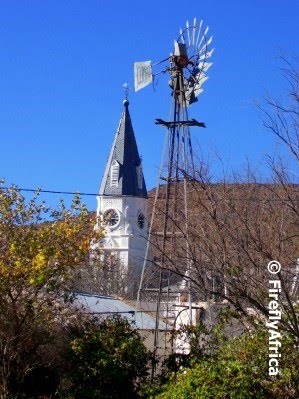 Two of the most typical things that you would associate small towns in the platteland (countryside) with are churches and windpompe (windpumps). They are to small towns as Aston Martins and girls are to James Bond. In this scene in Nieu Bethesda in the Karoo I got them both in one shot. James Bond driving with the top down and a beautiful girl next to him.Windpomp and church tower