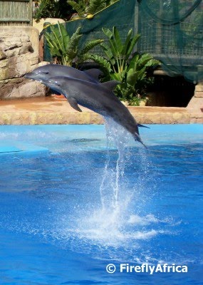 I write this post with apologies to Naialani the Island Girl who likes to swim with her wild dolphins in Hawaii. Since the dolphins here in Bayworld in Port Elizabeth moved to Hong Kong a year ago, the only place in South Africa where you can view a dolphin presentation in captivity is at uShaka Marine World in Durban. As much as dolphins should be free out in the big blue sea, dolphins in captivity does play a big role in educating and informing people, and in particular kids, about these wonderful mammals. Please, before anybody has a go at me for advocating keeping dolphins in captivity, I’m not. I would much rather be swimming with them in the wild like Naialani does.